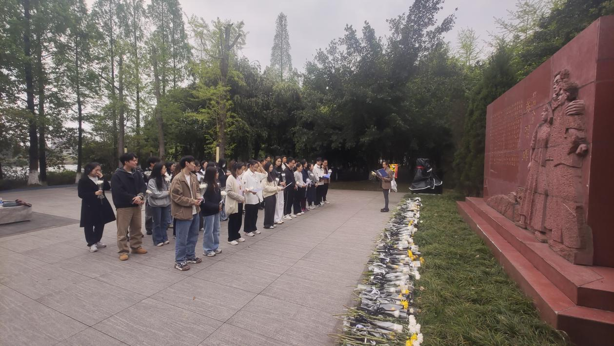 教师第一党支部与研究生第一党支部在江安校区英烈纪念碑联合开展清明祭英烈联合主题党日活动。活动由组织员简丽同志主持。